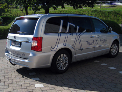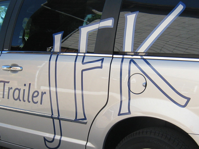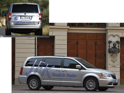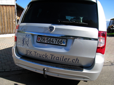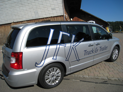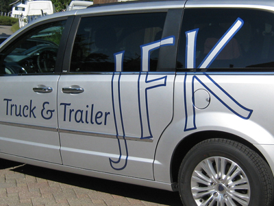 Beschriftung auf Lack und auf Glas. Für das JFK Truck & Trailer. Ausführung: Cut-Plot; Material: 3M Scotchcal Serie 100
